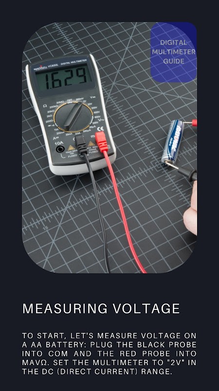 Digital Multimeter Guide เป็นเครื่องมือที่สมบูรณ์แบบสำหรับผู้ที่ชื่นชอบ DIY ช่างเทคนิคไฟฟ้า และทุกคนที่สนใจในอุปกรณ์อิเล็กทรอนิกส์และการซ่อมแซมไฟฟ้า ด้วยอินเทอร์เฟซที่เป็นมิตรต่อผู้ใช้ คุณจะสามารถเข้าถึงข้อมูลทั้งหมดที่จำเป็นสำหรับการเริ่มต้นได้อย่างรวดเร็ว