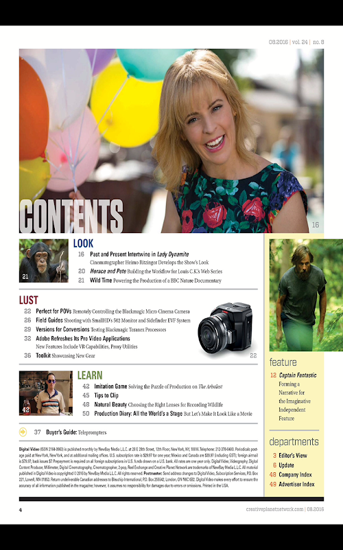 Each monthly issue is organized into three primary sections: Look, Lust and Learn. "Look" focuses on the creative process, "Lust" is all about tools & technology, and "Learn" is instructional - how to use your gear, terms and trends you should know, and how to use your new skills. Get what you need to succeed.