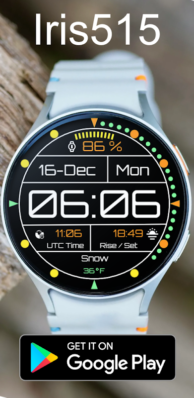 • Wear OS เท่านั้น: หน้าปัดนาฬิกา Iris515 ได้รับการออกแบบมาโดยเฉพาะสำหรับอุปกรณ์ Wear OS