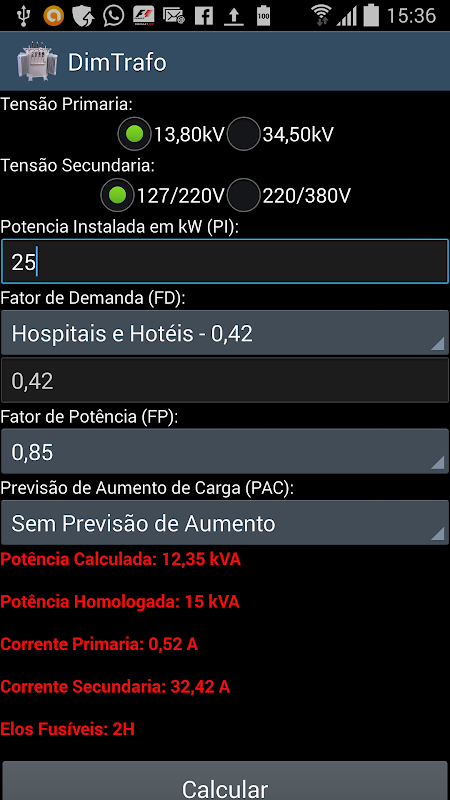 Dimensionamento de Transformador Elétrico de distribuição.