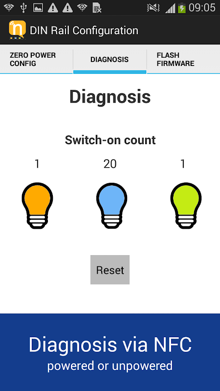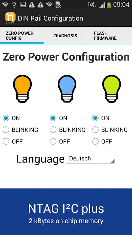 parameterization ศูนย์อำนาจและการวินิจฉัยผ่าน NFC สำหรับการตั้งค่าการสาธิตราง DIN