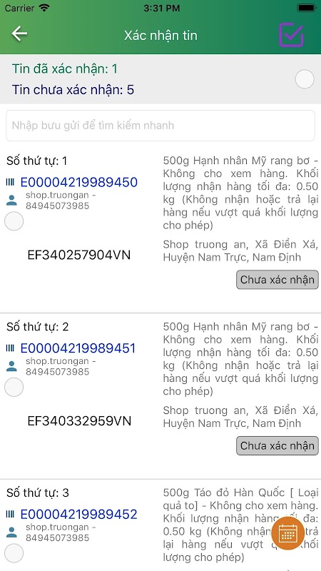 •การติดตามคำสั่งซื้อที่สะดวกสบาย: คำสั่งซื้อจะแสดงอย่างชัดเจนและถูกต้องในระบบ บุรุษไปรษณีย์สามารถหาปริมาณและสถานะของการสั่งซื้อทุกวันจำนวน COD ที่ต้องรวบรวม