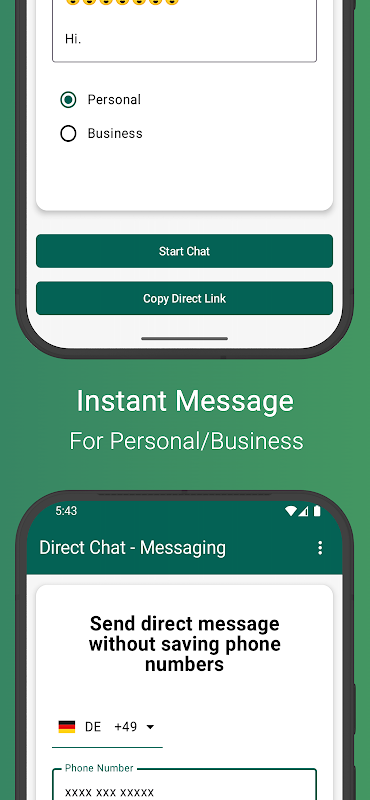 DirectChat คือแอปส่งข้อความที่ทรงพลัง มอบประสบการณ์การส่งข้อความโดยตรงที่ยอดเยี่ยม ด้วย Direct Message คุณสามารถส่งข้อความโดยตรงถึงใครก็ได้โดยไม่ต้องบันทึกรายชื่อผู้ติดต่อในโทรศัพท์
