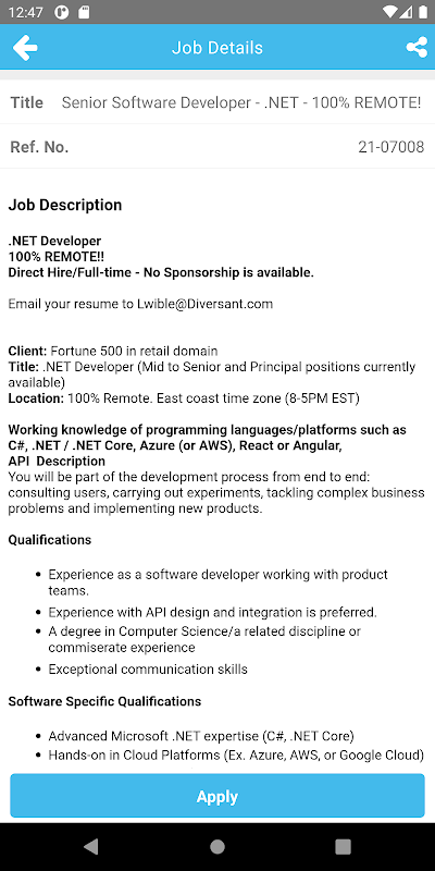 JobDiva Inc.การจัดประเภทเนื้อหา