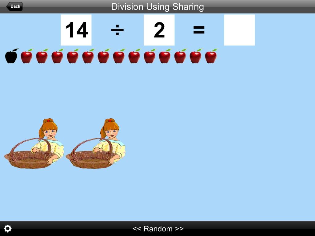 In this app, a division problem is illustrated by sharing with apples