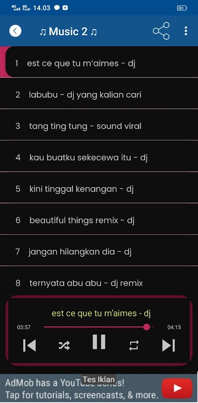 ด้วยการใช้แอปพลิเคชั่น DJ Mix full Bass ผู้ใช้สามารถค้นหาเพลงล่าสุดจากดีเจชื่อดังเช่น DJ Mbon Mbon, DJ Opus, DJ Editra Tamba, DJ Mask, Abang DJ, DJ ล่าสุด 2025 และอีกมากมาย แอปพลิเคชั่นเพลง Viral 2025 DJ Song ล่าสุดของปีนี้มาพร้อมกับคุณสมบัติการค้นหาเพลงที่ซับซ้อน ดังนั้นผู้ใช้สามารถค้นหาเพลง DJ Ayo Sayang Culik Aku Dong ได้อย่างง่ายดาย