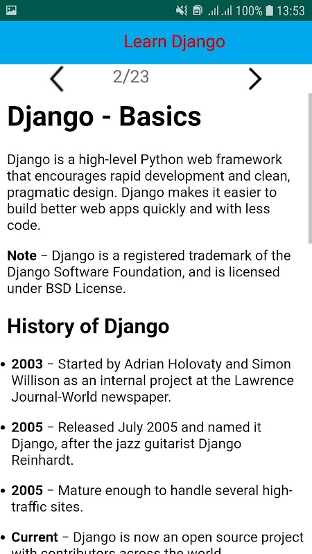 ข้อมูล Django Tutorial APK
