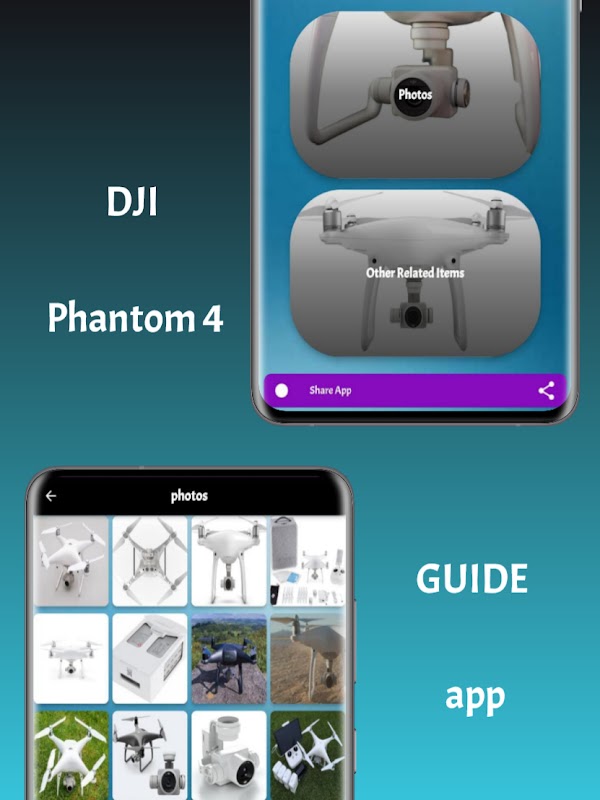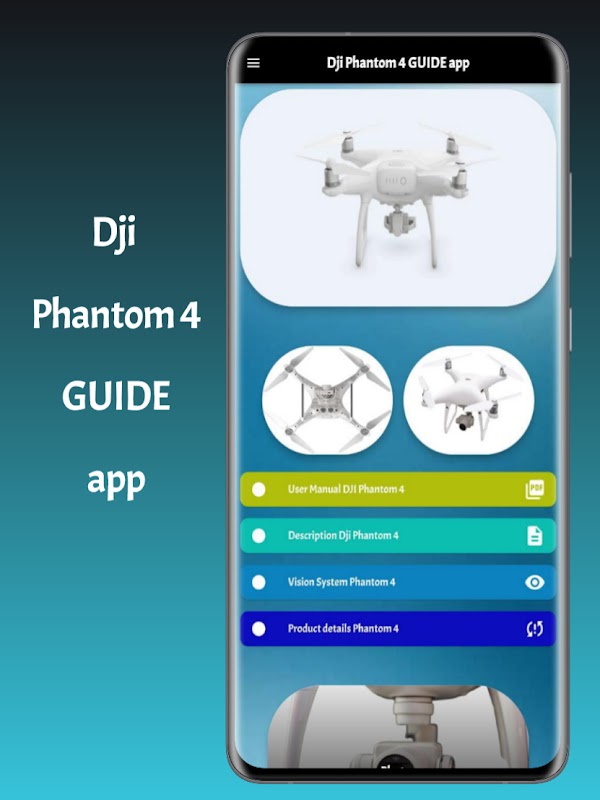+ มีรูปภาพมากมายเพื่อดูการออกแบบทั้งหมดของ Dji Phantom 4 GUIDE App