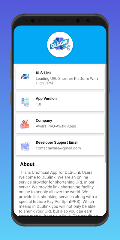 This is an unofficial app for DLS-Link users. DLS-Link users can manage their Statistics very easily. DLS-Link users can access their earning reports very quickly. Due to large number of URLs, users wasting their much data and time. This App is solution for all problems. This app is totally free, safe, secured.