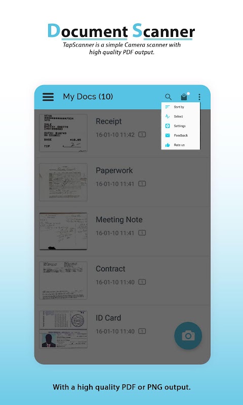 Now convert your smart phone into a mini pocket scanner and enjoy the high quality image in your device within just one touch with the best ever scanning mobile app Document Scanner Camera Scanner: Free PDF Scans. Clear Scanner lets you quickly scan any kind of documents in your office, images, bills, receipts, books, magazines, class notes and anything that needs to be there in your device within no time. This is the fastest means to get the scanned document in the highest quality and convert it immediately into PDF or JPEG format so that you can share the scanned document, image, books, bills, important notes or any kind of paper that you can think of.