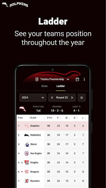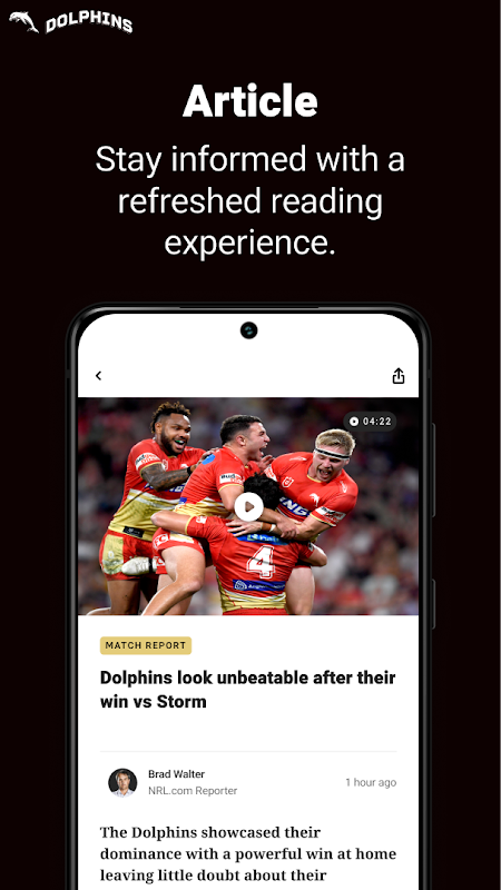ด้วยอินเทอร์เฟซที่เรียบง่ายและการนำทางที่ได้รับการปรับปรุง แอปอย่างเป็นทางการของ Dolphins จึงเต็มไปด้วยคุณสมบัติและเนื้อหา ซึ่งรวมถึง: