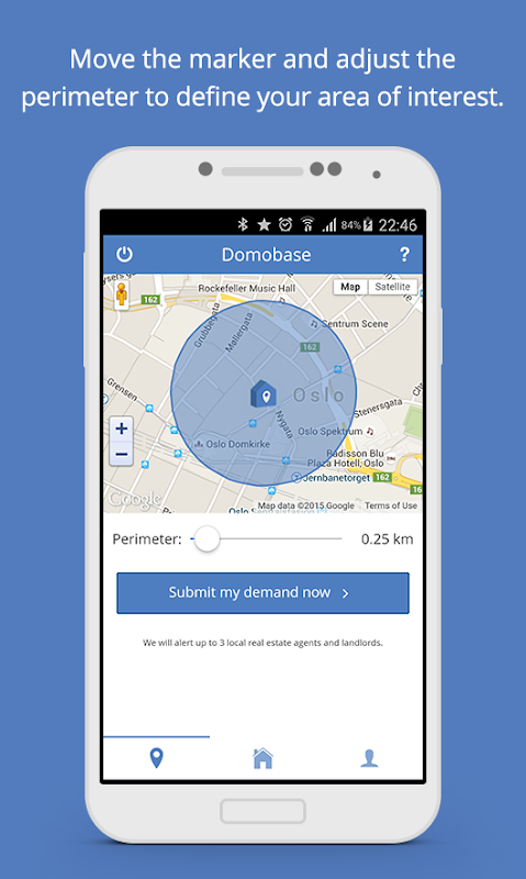 Domobase is a free mobile application that lets you connect with your social network and specify the type of property you seek to buy, rent or invest in. You then just need to visit your favorite neighborhood (or type an address) and tap on a button to build a profile that our artificial intelligence and team will promote to a maximum of three local, competent real estate agents and landlords.
