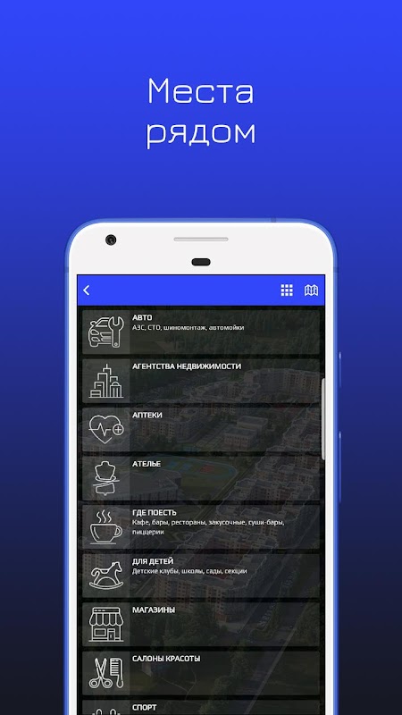 РЯДОМ: компании в ЖК и рядом с ним, с возможностью позвонить, написать и перейти на их сайт;