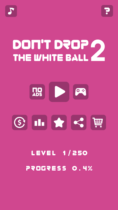 Don't Drop The White Ball 2 is a game for all ages. Enjoy this new arcade game wherein you have to simply save the falling balls from dropping. Navigate the stick from left to right and stop the balls from dropping while moving up the levels. Collect coins and unlock the new balls and be the online leaderboard. With almost 250 levels, Donât Drop The White Ball 2 is a highly addictive and fun game.