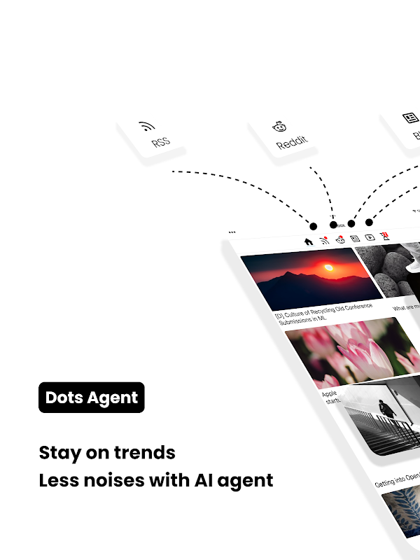 * เนื้อหาที่คัดสรรแล้ว ส่งมอบสดใหม่: Dots Agent รวบรวมเนื้อหาจากแหล่งต่างๆ อย่างชาญฉลาด กรองสิ่งรบกวนออก และนำเสนอเฉพาะหัวข้อข่าวและข้อมูลเชิงลึกที่เกี่ยวข้องมากที่สุด ไม่มีการเลื่อนที่ไม่มีที่สิ้นสุดอีกต่อไป!