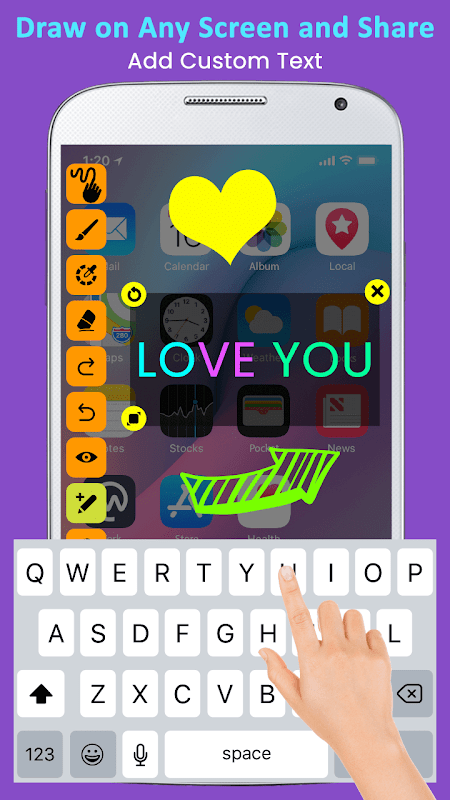 วาดบนแอปหน้าจอใดก็ได้และแอปแชร์นั้นใช้งานได้เหมือนแผ่นภาพวาด ซึ่งช่วยให้คุณสามารถวาดได้ทุกที่ (แอพหรือเกมอื่น ๆ ) บนหน้าจออุปกรณ์ของคุณในช่วงเวลาทำงาน