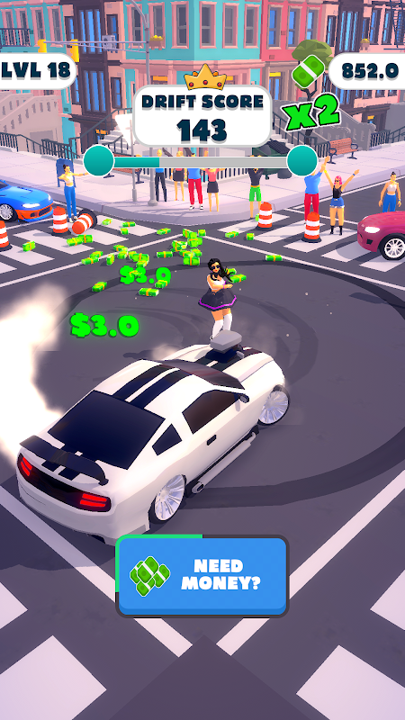แตะค้างไว้เพื่อเริ่มดริฟท์และรับเงิน