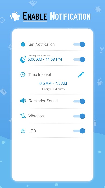 การศึกษาในแง่ดีเปิดเผยว่าการดื่มน้ำอย่างเพียงพอนั้นเป็นสิ่งจำเป็นต่อร่างกายและสุขภาพผิวของคุณและถึงแม้จะช่วยลดการหย่อนยานได้! อย่างไรก็ตามแอพเตือนความจำน้ำนี้เป็นผู้ช่วยตามธรรมชาติที่จะกระตุ้นให้คุณดื่มน้ำทุกวัน โปรดจำไว้; ประมาณ 50-70% ของมวลกายประกอบด้วยน้ำซึ่งประกอบด้วยผิวหนังเนื้อเยื่อเซลล์และอวัยวะ ดังนั้นใช้เครื่องคำนวณน้ำอย่างง่ายของเราเพื่อติดตามปริมาณการดื่มน้ำของคุณทุกวัน โดยทั่วไปการแจ้งเตือนการดื่มน้ำนี้จะเตือนคุณเกี่ยวกับน้ำดื่มในเวลา; จริง ๆ แล้วมันแนะนำปริมาณของของเหลวที่คุณควรจะต้องบริโภคเพื่อความชุ่มชื้นที่เหมาะสม ปริมาณของเหลว / ของเหลวรวมถึงชากาแฟน้ำผลไม้นมเครื่องดื่มชูกำลังหรือคุณสามารถสร้างของคุณเองเพื่อรักษาความชุ่มชื้น คุณเพียงแค่ต้องใส่ชายหรือหญิงและน้ำหนักของคุณลงในเครื่องติดตามน้ำรายวันที่ดีที่สุด แนะนำปริมาณน้ำที่คุณต้องใช้ นอกจากนี้แอพไฮเดรชั่นนี้เกี่ยวกับเวลาปลุกและสลีปของคุณเพื่อแสดงการแจ้งเตือนทุกวันและคุณสามารถตั้งค่าช่วงเวลาการแจ้งเตือนในแอพติดตามน้ำ