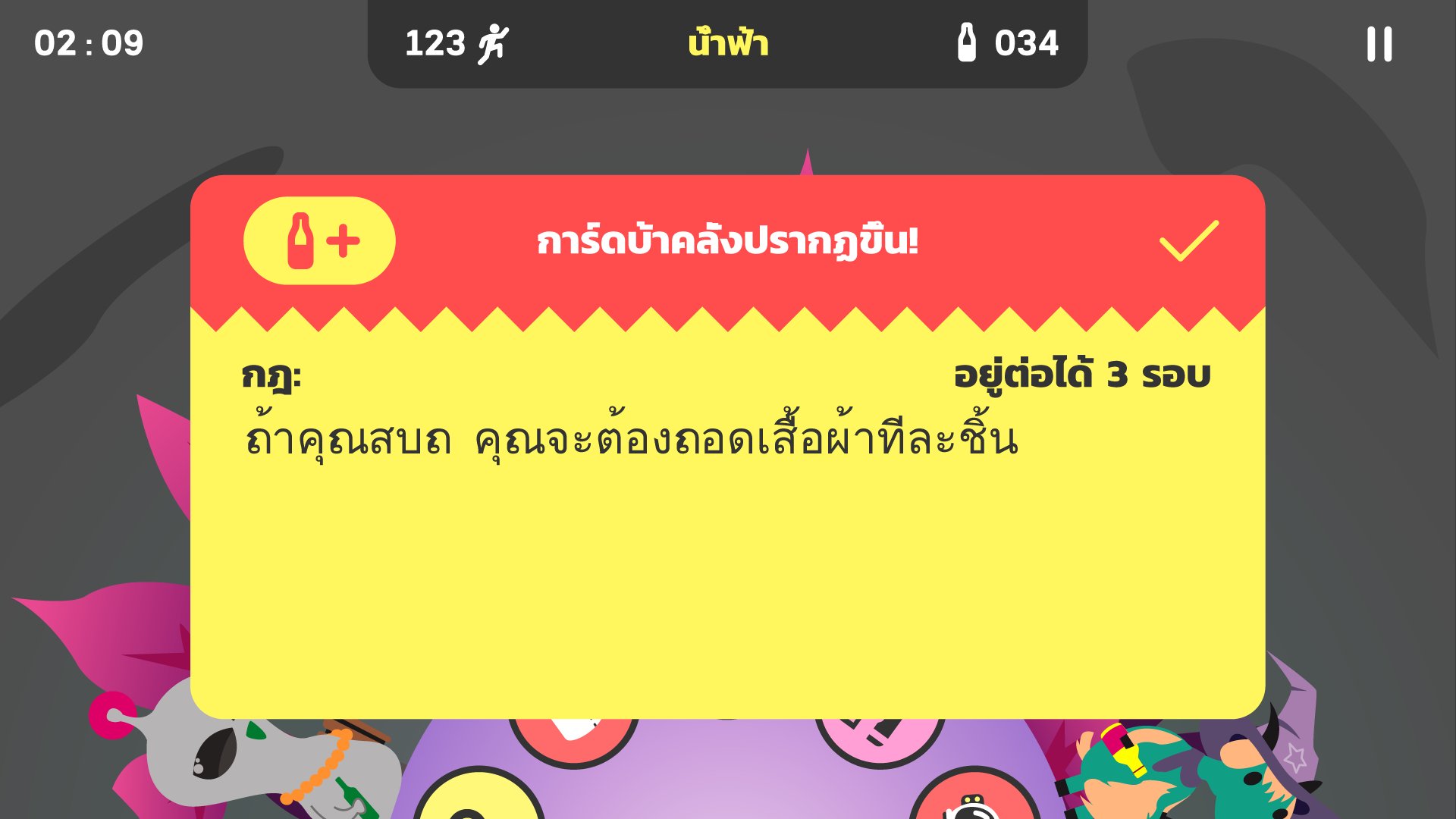 คุณและเพื่อนของคุณจะได้รับเลือกเสมอระหว่างการดื่มหรือทำท้าหรือรับคำท้า เริ่มเล่นเกมการดื่มกันเถอะ!