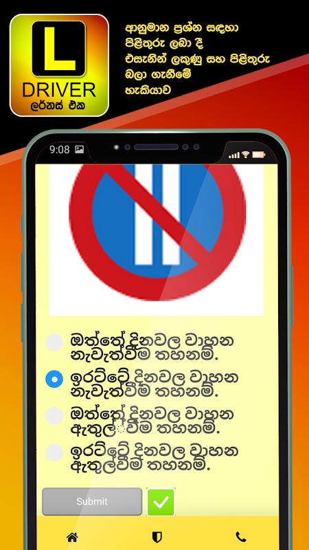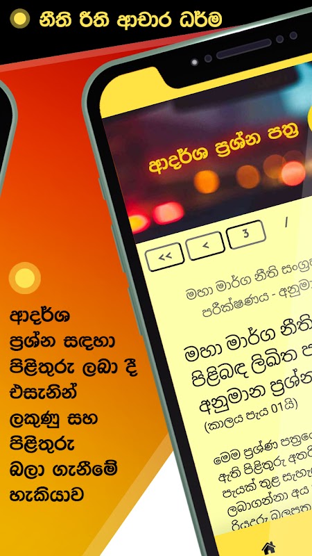 මෙම යෙදුම භාවිතය මගින් ඉතා පහසුවෙන් රියදුරු පුහුණු ප්රශ්න, මාර්ග සලකුණු, නීති රීති සහ අචාරධර්ම පිළිබඳ දැනුම ඔබට ලබා ගත හැක.