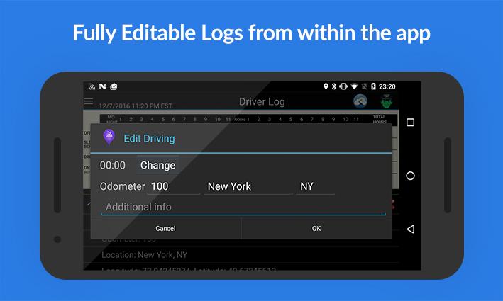 DriverLog เป็นทั้ง app มือถือที่สามารถติดตั้งบนอุปกรณ์ Android และเป็นบูรณาการประยุกต์ใช้การจัดการ Fleet (สามารถบูรณาการในการแก้ปัญหาของบุคคลที่ 3 หรือไร้สายลิงค์ Fleet.Net ของเรา)