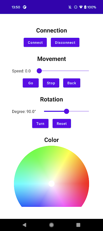 แอปสาธิตการทำงานกับ Droid Inventor Kit