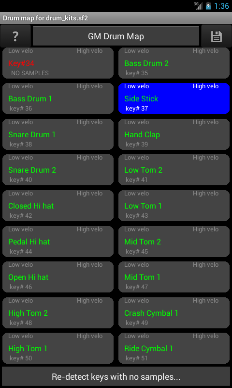 + ตรวจสอบตัวอย่าง / การกำหนดคีย์ SoundFont ของ