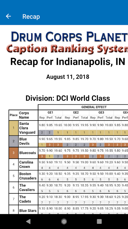 The only Android app for drum corps scores, news, and more.