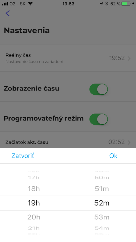 Nastavenie času zapnutia programovaného módu