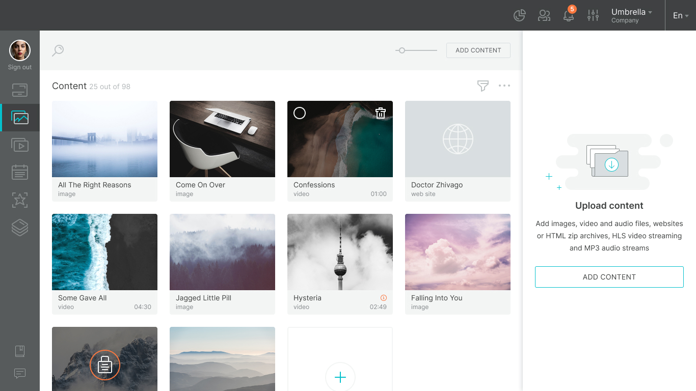 จัดการเนื้อหาประเภทต่างๆ สร้างเพลย์ลิสต์ จัดกลุ่มหน้าจอของคุณ และเปลี่ยนการตั้งค่าจากระยะไกลโดยใช้ DS Content Manager บนเว็บอย่างง่าย และเซิร์ฟเวอร์บนคลาวด์ที่ปลอดภัยซึ่งขับเคลื่อนโดย Amazon ปรับใช้เครือข่ายป้ายดิจิตอลของคุณเองอย่างรวดเร็ว ง่ายดาย ด้วยต้นทุนที่ต่ำที่สุดและประสิทธิภาพสูงสุด