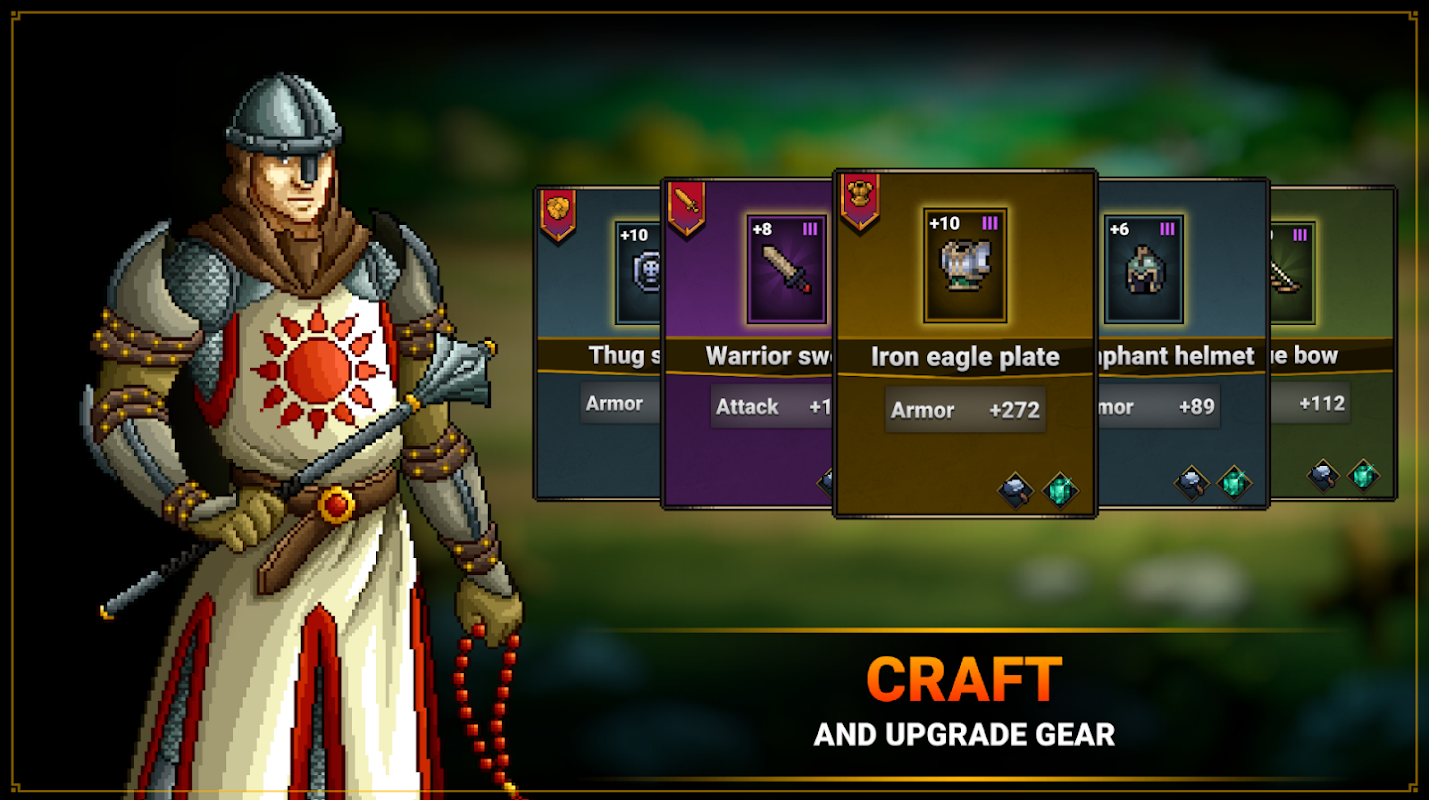 รวบรวมอาวุธ ชุดเกราะ สิ่งประดิษฐ์ และคาถา ใช้โรงตีเหล็กเพื่อปรับปรุงอุปกรณ์ของคุณและสร้างอุปกรณ์ทรงพลังสำหรับการต่อสู้