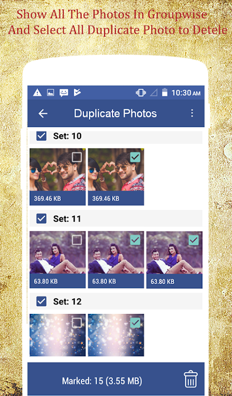 Here is the Duplicate Image Finder or you can also call it as Duplicate Photos Remover or Duplicate Media Remover for you which can scan through your entire phone and finds the duplicate image, picture, photo, audio songs and all other types files for you. You can make judgement yourself if you want to delete by selecting them.