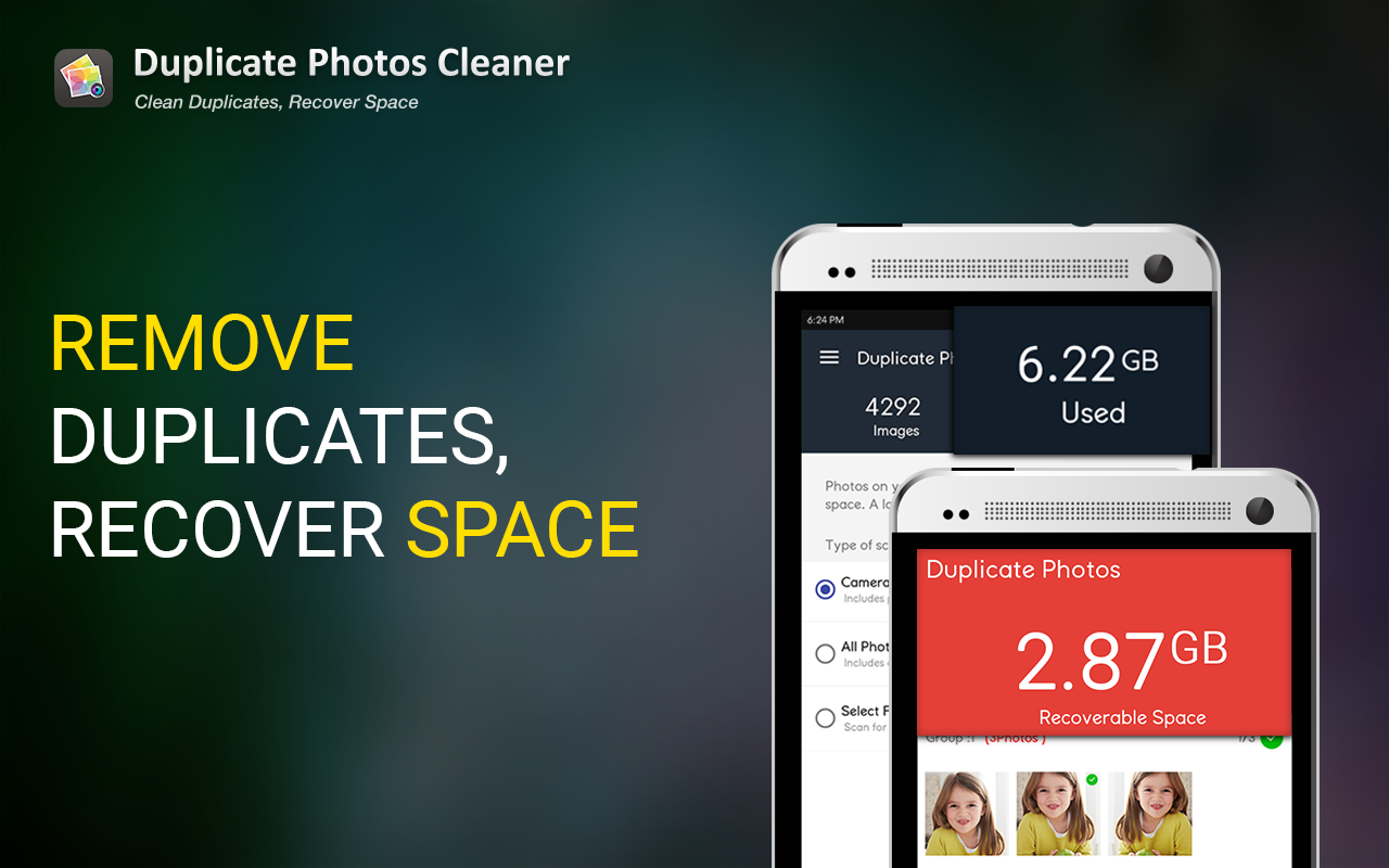 Duplicate Photos Cleaner is the ultimate storage slimming app for your Android device. You can search for all duplicate & similar photos existing on your device. Simply scan and search your Gallery for all copies of duplicate photos you don’t need anymore.