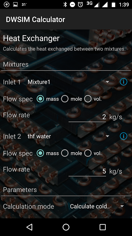 DWSIM คำนวณเป็น app ที่จะคำนวณเฟสสมดุลคุณสมบัติของผสมของสาร (สารประกอบ) และหน่วยรูปแบบการดำเนินงานโดยใช้อุณหพลศาสตร์ขั้นสูง ขึ้นอยู่กับรูปแบบของห้องสมุด DWSIM, ได้รับรางวัลโอเพนซอร์สจำลองกระบวนการสำหรับเดสก์ท็ DWSIM เครื่องคิดเลขสำหรับ Android คุณสมบัติ: