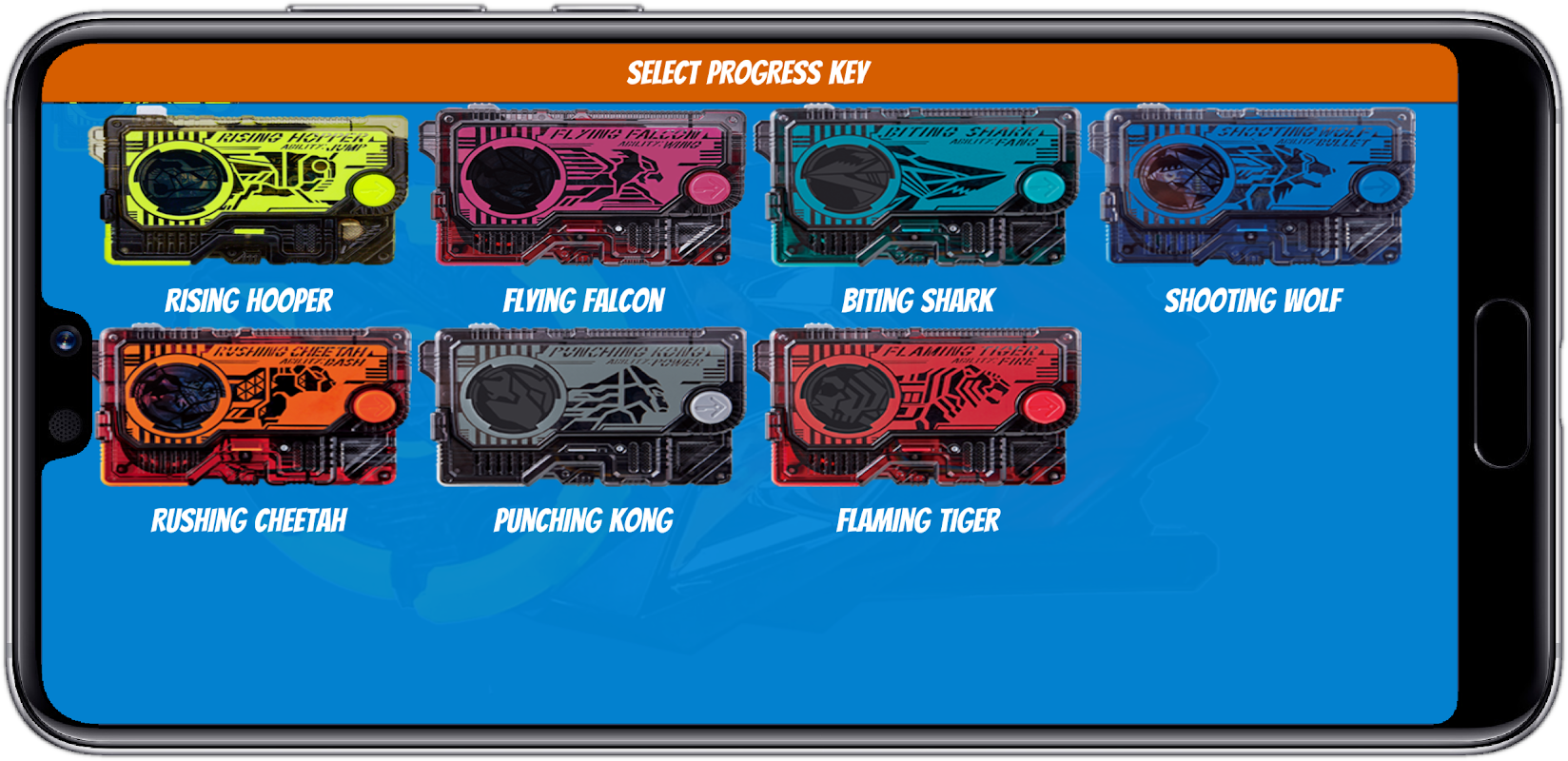 แอพ Android เวอร์ชันเกมจำลองเข็มขัด henshin นี้นำเสนอโปรแกรมหลักล่าสุดจากซีรีย์ henshin zero one