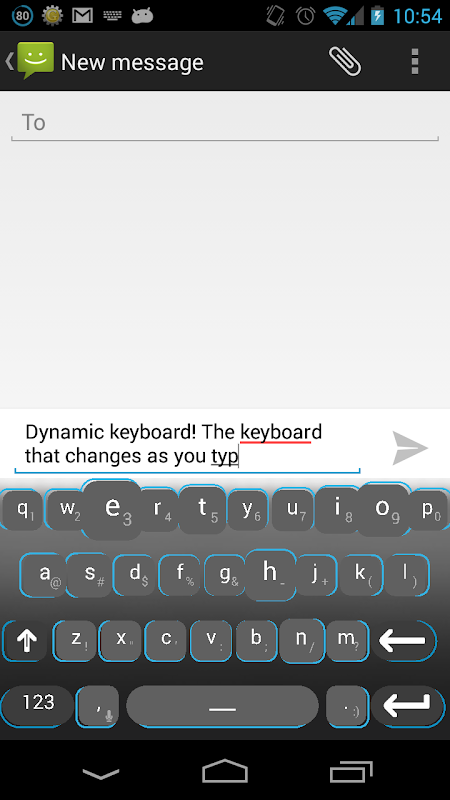 แทนที่จะเป็นเสือกและน่าเกลียดเช่นการพิมพ์ทำนายแป้นพิมพ์นี้ช่วยวิธีการปัจจุบันของการพิมพ์เพื่อเพิ่มความถูกต้องโดยไม่ต้องเสียพื้นที่หน้าจอ