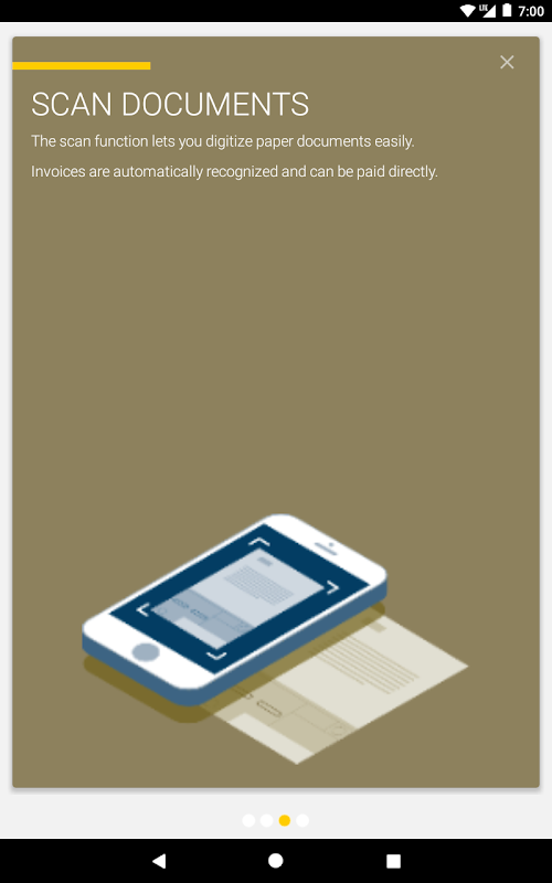 “Scan documents” – photograph and archive documents simultaneously. Inpayment slips are recognized automatically and payment data is read, meaning payment orders can be directly transferred to the bank.