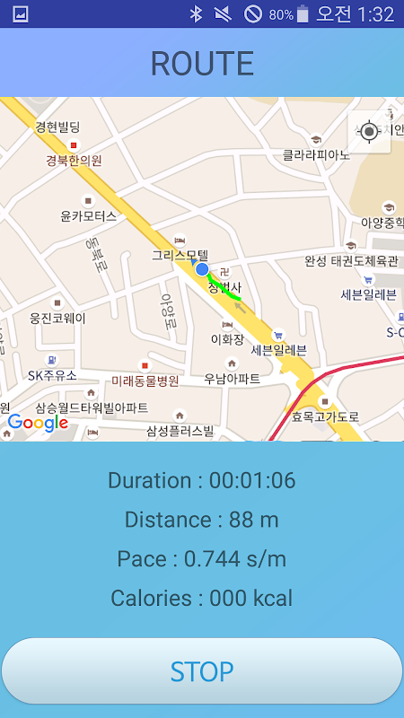 현재 운행 경로를 지도위에 표시해주고 경로정보를 표시해주는 기능을 탑재한 앱 입니다.