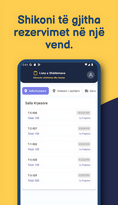 E-Table është aplikacioni inteligjent për menaxhimin e restoranteve dhe bareve, që ju ndihmon të rrisni efikasitetin dhe të ofroni një eksperiencë perfekte për klientët tuaj. ฉัน E-Table mund të pranoni rezervime online, të menaxhoni porositë në kohë reale, të monitoroni shitjet dhe raportet e biznesit, dhe të ofroni pagesa digjitale të sigurta. Aplikacioni është i thjeshtë, intuitiv dhe i përshtatshëm për çdo restorant ose bar, duke e bërë biznesin tuaj më efikas dhe klientët më të kënaqur. Transformoni mënyrën se si menaxhoni restorantin tuaj me E-Table!