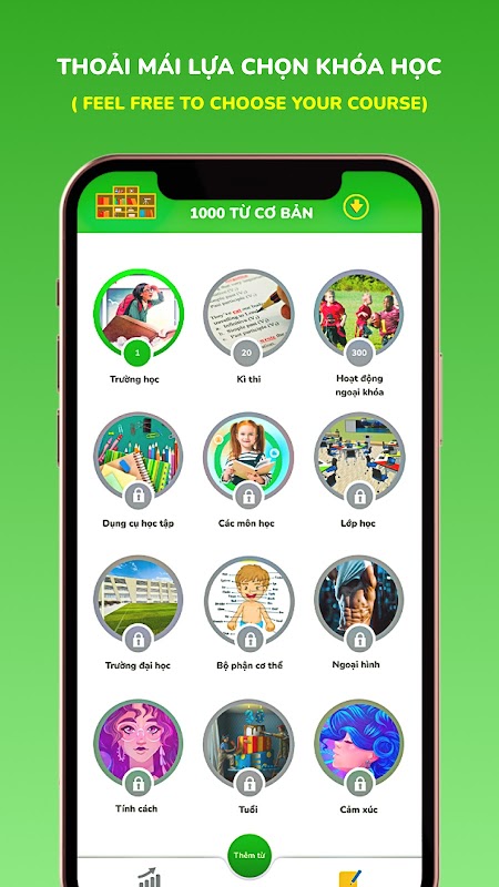 - Học các từ vựng được soạn sẵn theo các chuyên ngành như công nghệ thông tin, tiếng anh du lịch, tiếng anh công sở. Ngoài ra ứng dụng còn có các chủ đề về IELTS, TOEIC.