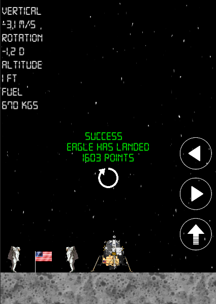 2D Simulation of eagle landing phase of Apollo 11 mission