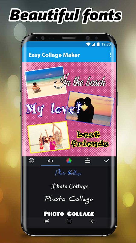 ★ TEXT EDITOR: Use the powerful text editor to add text to your image, write the names of your friends or a nice phrase that describes your collage.