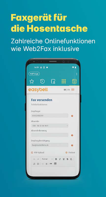 ดาวน์โหลดแอป Easybell ตอนนี้และติดต่อได้อย่างมืออาชีพไม่ว่าคุณจะอยู่ที่ไหน