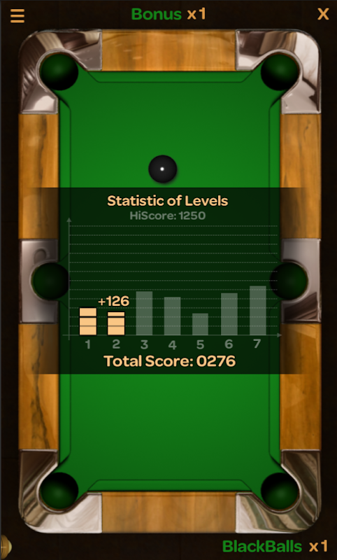 ทุกอย่างง่ายมาก: ขับลูกบอลสีขาวลงในกระเป๋าและดูแลลูกบอลสีดำ หากคุณทำคะแนนลูกหลายลูกติดต่อกันหรือตีกระเป๋าที่ทำเครื่องหมายไว้จะได้รับโบนัส (ผลของคะแนนลูกคูณ)