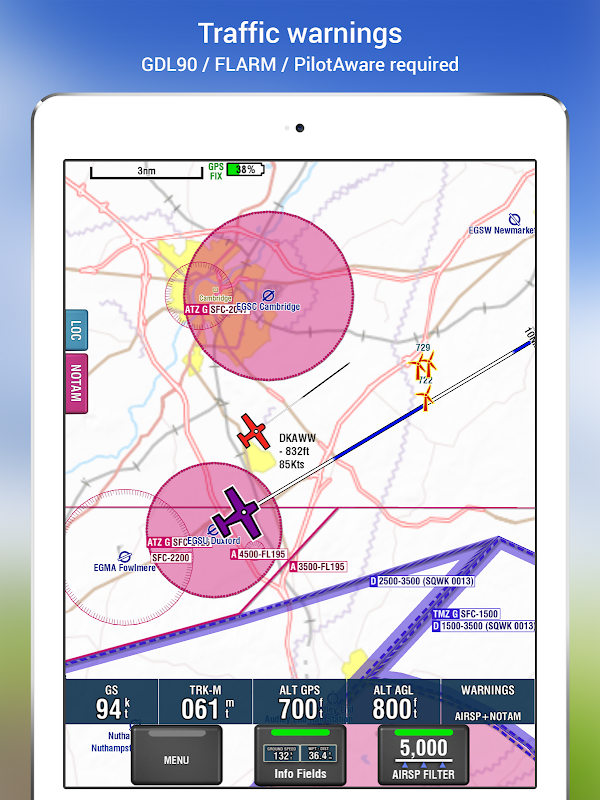 EasyVFR Basic UK (ก่อนหน้านี้: AirspaceAvoid) ประสบความสำเร็จด้วยแอป EasyVFR 4 ใหม่ แอพ EasyVFR 4 ใหม่ให้ทั้งนักบินมือใหม่และนักบินขั้นสูงในทุกประเทศในยุโรปด้วยแผนที่เคลื่อนที่ที่ง่ายที่สุด ชัดเจนที่สุด และสะดวกที่สุดบนอุปกรณ์มือถือของพวกเขา EasyVFR 4 SmartMap มีทั้งหมด: น่านฟ้าที่เปิดใช้งานแบบไดนามิก, การจราจรสด, ขั้นตอนการมาถึงและออกจาก VFR, อุปสรรค, ภูมิประเทศและคุณสมบัติทางภูมิศาสตร์ที่ชัดเจน ทั้งหมดขับเคลื่อนโดยผู้ให้บริการข้อมูลที่เชื่อถือได้และแม่นยำที่สุดในอุตสาหกรรม