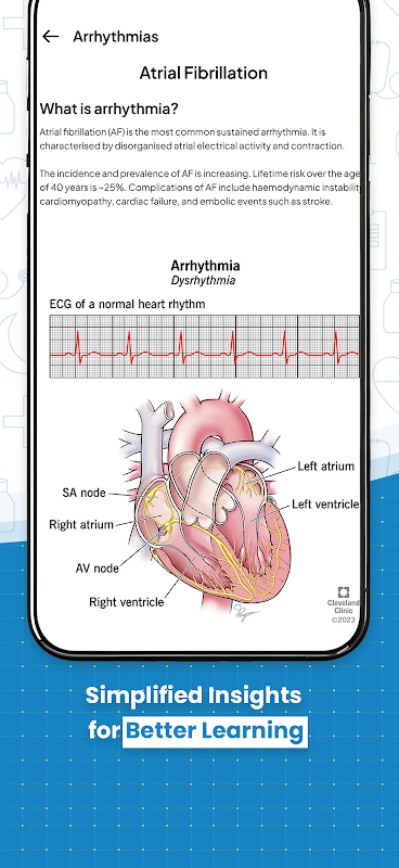 - เนื้อหาเชิงโต้ตอบ: เข้าถึงสื่อการเรียนรู้พร้อมคำอธิบาย แผนภาพ และตัวอย่างทีละขั้นตอนเพื่อสร้างรากฐานที่มั่นคงของความรู้ ECG