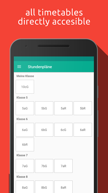 Filtere den Vertretungsplan nach Klassen und füge ein Widget zu deinem Startbildschirm hinzu, um Vertretungen noch schneller wahrzunehmen. Lass dich außerdem per Push-Benachrichtigung über neue Einträge informieren!