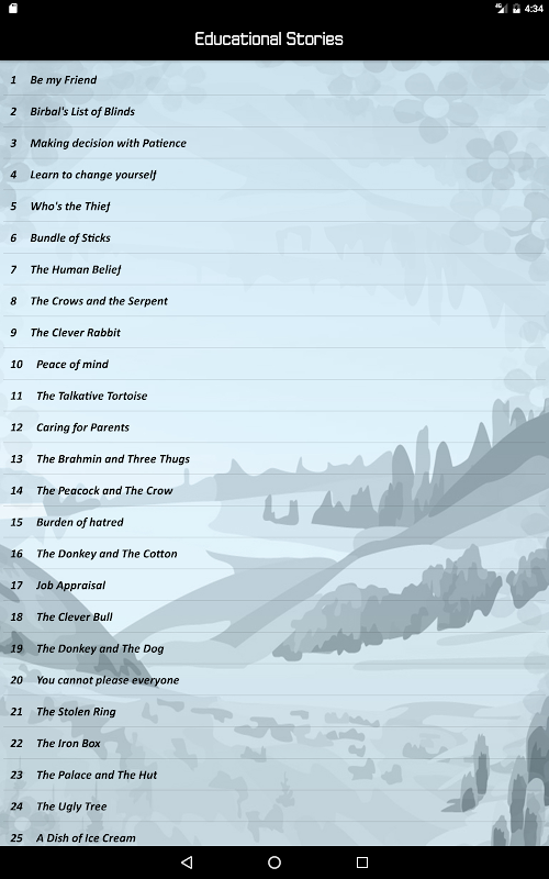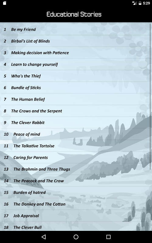 Educational stories are stories for children as well as adult. The app contains collection of educational and inspirational stories. Various stories from Akbar Birbal, Panchtantra and many other inspirational stories from our daily life are included.