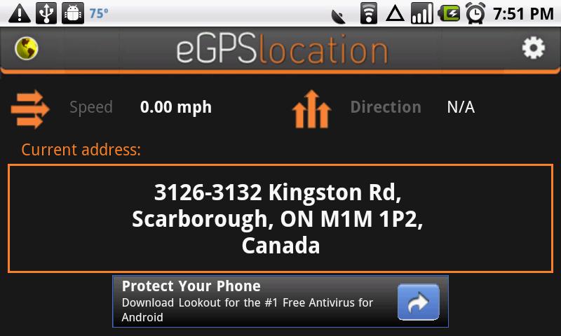 The new eGPS Location will allow you to learn what your exact location is at any time down to the current address. This new GPS location app is the product of modern research and development that integrates your current GPS location with highly advanced maps and geocoding technologies. eGPS Location can give you a location address with incredible accuracy through an easy to understand display and interface that includes the name, street number, city, state, zip code and country of your destination or location.