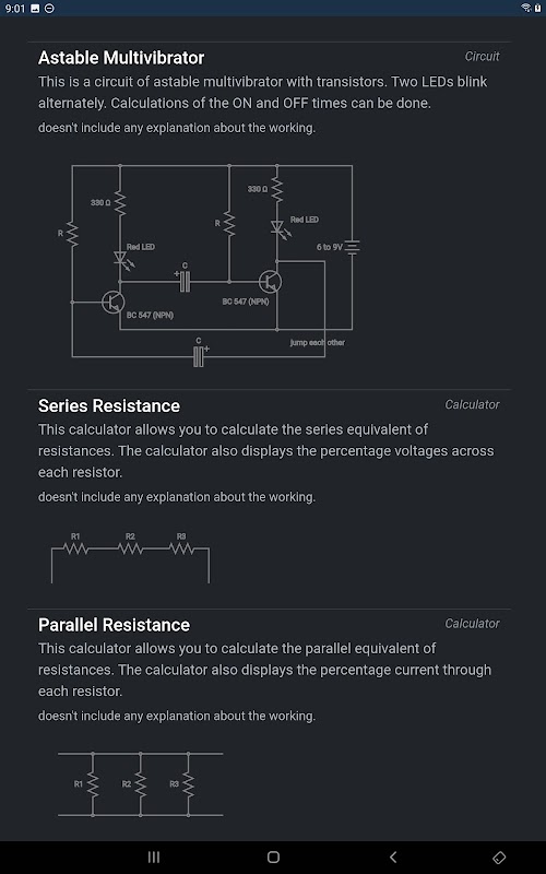 วงจรพื้นฐานทางไฟฟ้าและสำหรับการคำนวณเชิงโต้ตอบของค่าของส่วนประกอบทางไฟฟ้าสำหรับวงจร เช่น วงจรอนุกรม ขนาน R RC และ RLC